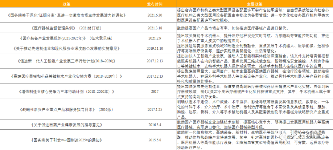 表2:截至2021年底中國腔鏡手術(shù)機器人相關(guān)政策