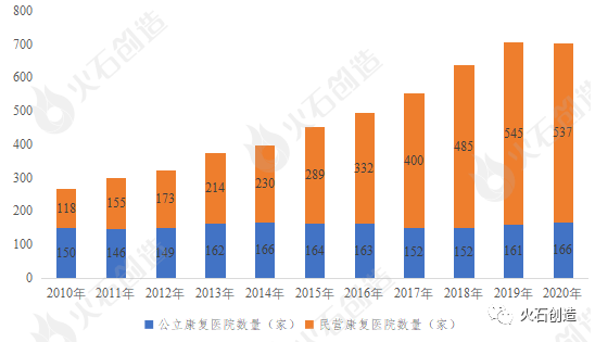 圖4:2010-2020年全國(guó)公立和民營(yíng)康復(fù)醫(yī)院數(shù)量