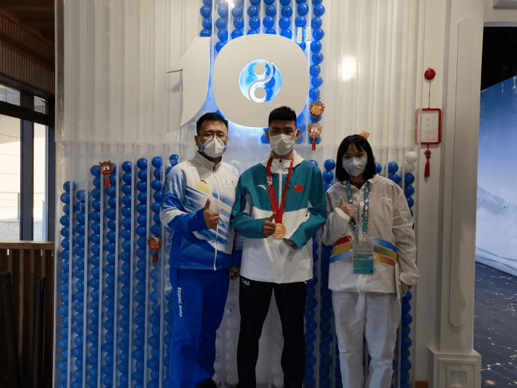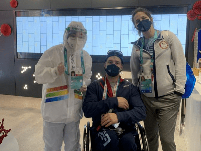 志愿者與殘奧高山滑雪銀牌獲得者張?chǎng)╈o合影