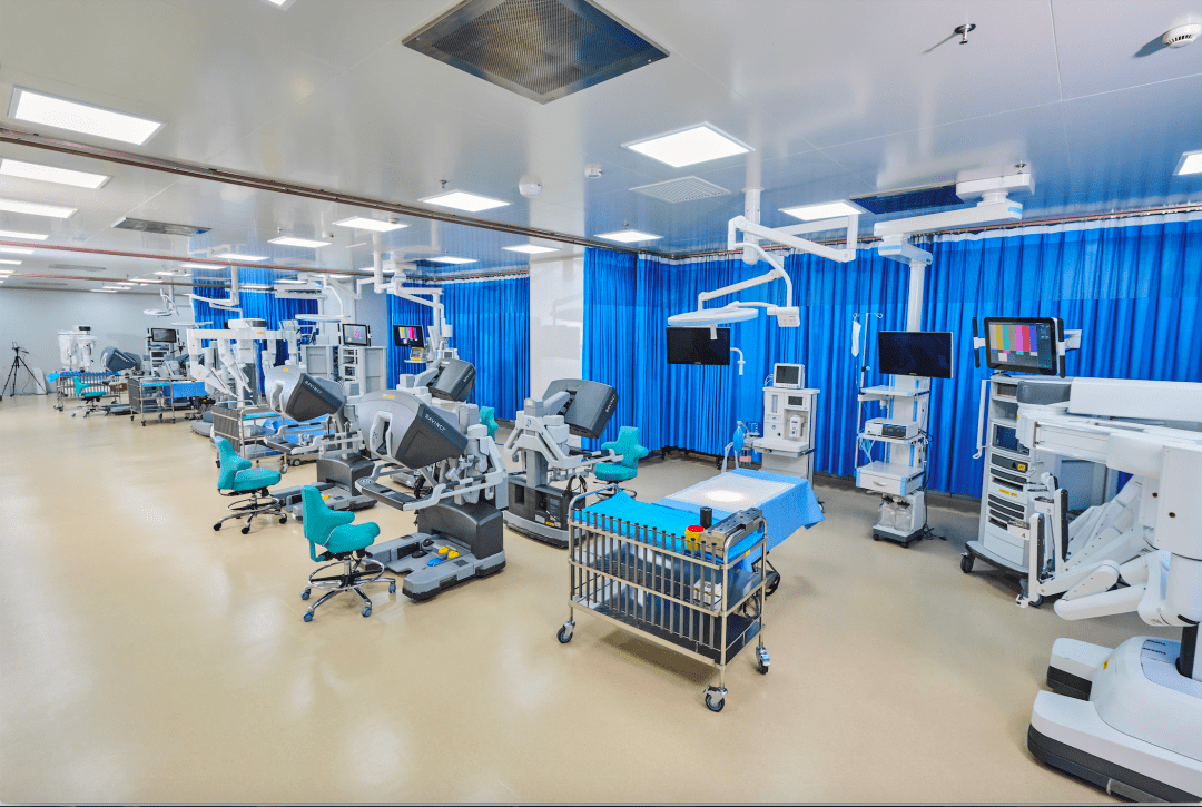 創(chuàng)新中心總面積達(dá)1700平方米,配備了行業(yè)前沿的模擬培訓(xùn)設(shè)施和設(shè)備,提供高度仿真的培訓(xùn)環(huán)境和階梯式專業(yè)臨床培訓(xùn),對(duì)國(guó)內(nèi)醫(yī)護(hù)專業(yè)人士開(kāi)展達(dá)芬奇手術(shù)機(jī)器人試駕、技術(shù)培訓(xùn)及由臨床專家?guī)Ы痰母呒?jí)臨床培訓(xùn)課程操練等項(xiàng)目。