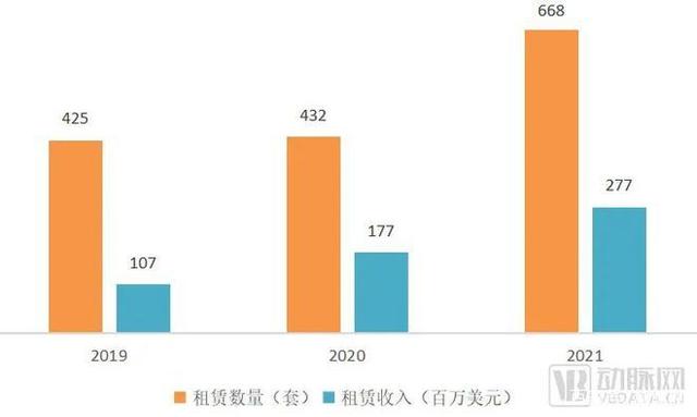 據(jù)年報數(shù)據(jù),在2021年、2020年和2019年里,各有668、432和425個達芬奇手術機器人投入租賃使用,并分別產(chǎn)生2.77億、1.77億和1.07億美元的營收。計算一下可以得到2021年每臺機器人年租費用約為41萬美元。此外,由于在租賃合同中有在特定時間點客戶可以行使買斷權的協(xié)議,在過去3年中,這方面的收入分別為9600萬、5222萬和9280萬美元。盡管營收的絕對數(shù)據(jù)并不算多,但租賃卻是一種行之有效的打開市場的方式。