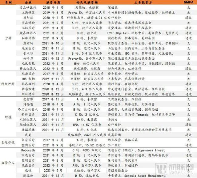 國內(nèi)主要企業(yè)手術機器人布局,數(shù)據(jù)源于動脈橙