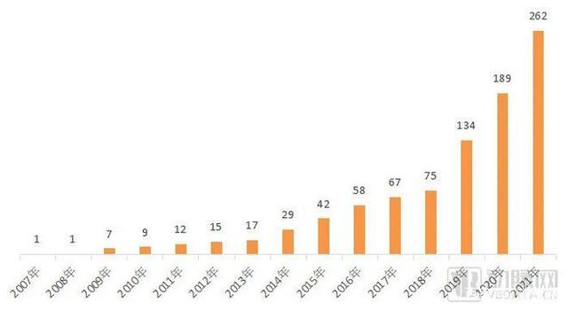 從2006年12月國內(nèi)引進第一臺達芬奇手術機器人開始,截至2021年底全國累計裝機262臺。2013年以前年裝機量基本低于5臺,2014年~2018年新增在10臺左右。最近3年呈現(xiàn)爆發(fā)式增長,分別為 59、54和73臺。