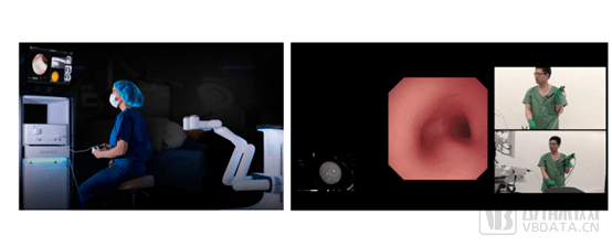 醫(yī)生操作柔性手術(shù)機(jī)器人(左)與操作內(nèi)窺鏡(右)