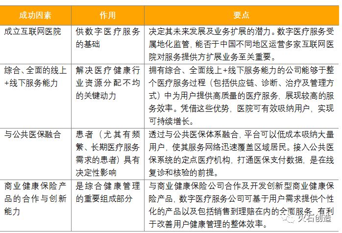 表2:中國(guó)數(shù)字醫(yī)療服務(wù)市場(chǎng)成功因素