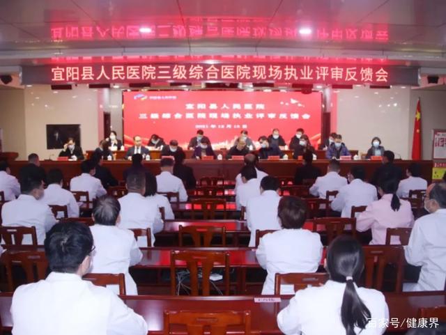 2021年12月15日,宜陽縣人民醫(yī)院三級綜合醫(yī)院現(xiàn)場執(zhí)業(yè)評審反饋會現(xiàn)場(圖片來源:醫(yī)院官方微信)