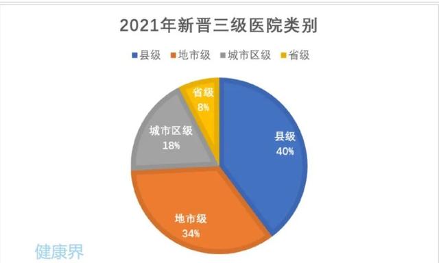 其次是地市級醫(yī)院,占據(jù)2021年新晉三級醫(yī)院約34%;
