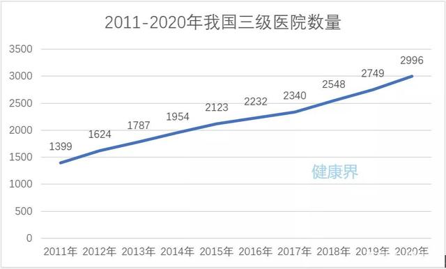 如此,在2021年,全國三級醫(yī)院總量突破了3000家。