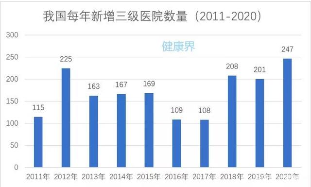 2020年,我國新增三級醫(yī)院247家,創(chuàng)10年來的峰值,總數(shù)達(dá)到2996家。