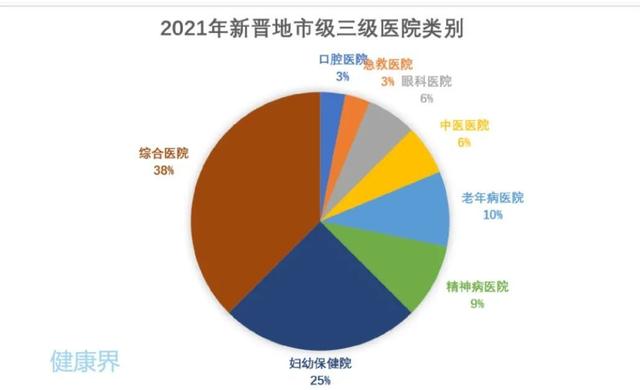 新晉城市區(qū)級三級醫(yī)院中,綜合醫(yī)院大約有三分之二。其次為婦幼保健院、中醫(yī)醫(yī)院、眼科醫(yī)院。