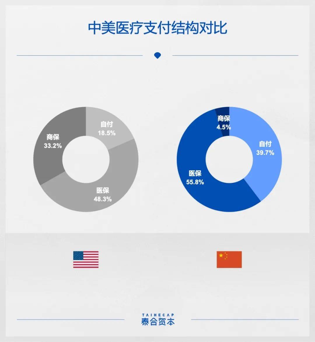 此外,中國醫(yī)療市場的商業(yè)化程度也與美國有著鮮明差異:美國市場以商業(yè)醫(yī)保為主,醫(yī)療保險種類多且靈活;中國市場以國家的基本醫(yī)療保險為主,保險基金原則上實行地市級統(tǒng)籌。
