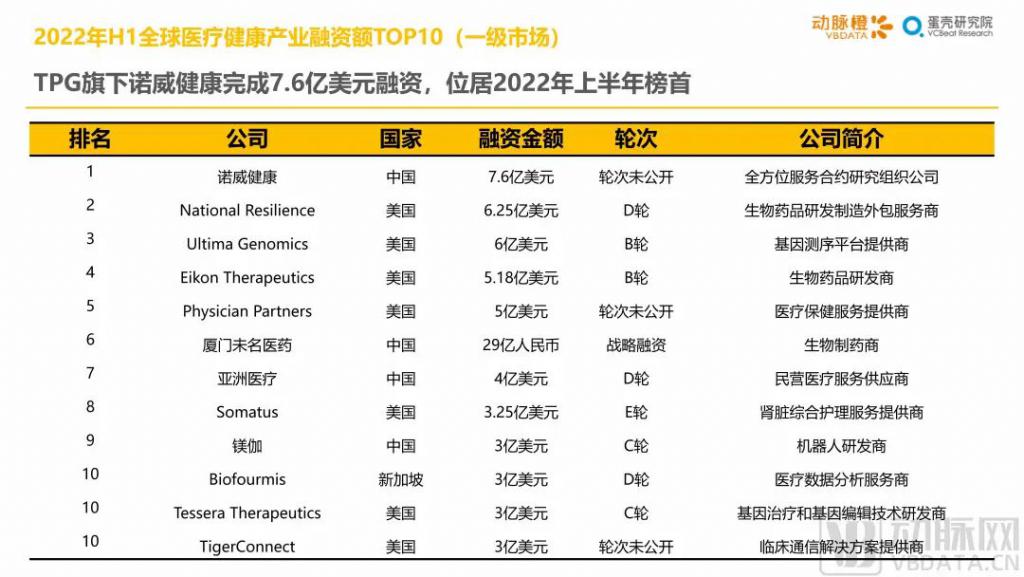 6.1TPG 旗下諾威健康完成 7.6 億美元融資,位居 2022 年上半年榜首