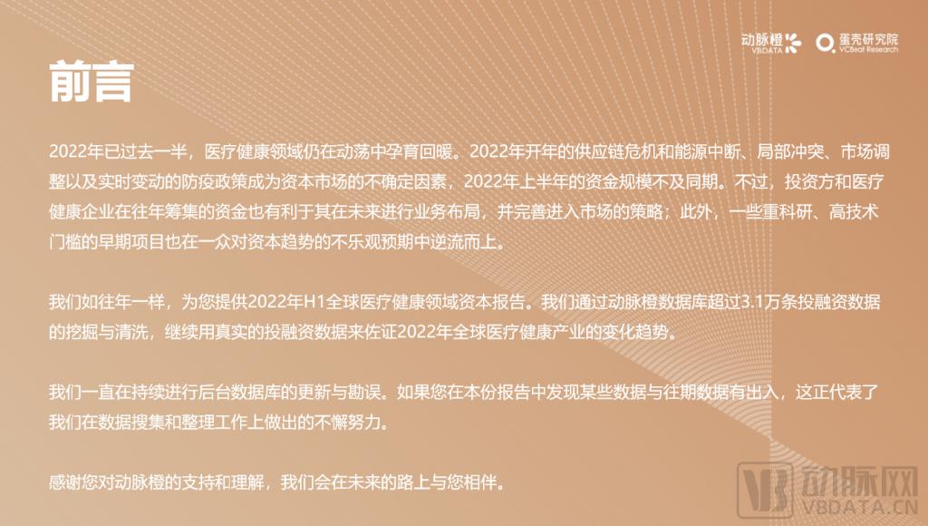 一、局部沖突、新冠病毒變異、能源沖擊、債務、經濟通脹等因素讓 2022 年 H1 海內外融資總額減少,投資者也趨于謹慎;不過,由于融資項目數量還在增加,且融資額的下降更多是和異軍突起的 2021 年比較,2022 年醫(yī)療健康產業(yè)領域也有望在下半年迎來新的轉機。