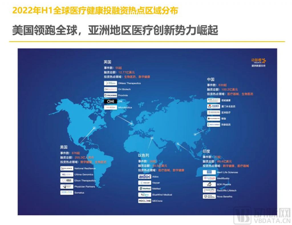 從投資熱點領域看,生物醫(yī)藥和數字健康是 2022 年上半年全球共同關注的熱點領域。