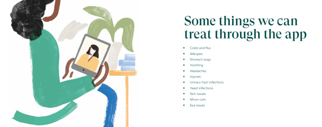 One Medical通過移動應用,提供24/7的視頻護理服務、預約護理、線上續(xù)處方等服務,可處理的病況包括感冒和流感、過敏、胃病、嘔吐、頭痛、受傷、尿路感染、酵母菌感染、皮膚問題、小切口以及眼睛問題。因此,患者在任何時間內都可以獲得線上護理。