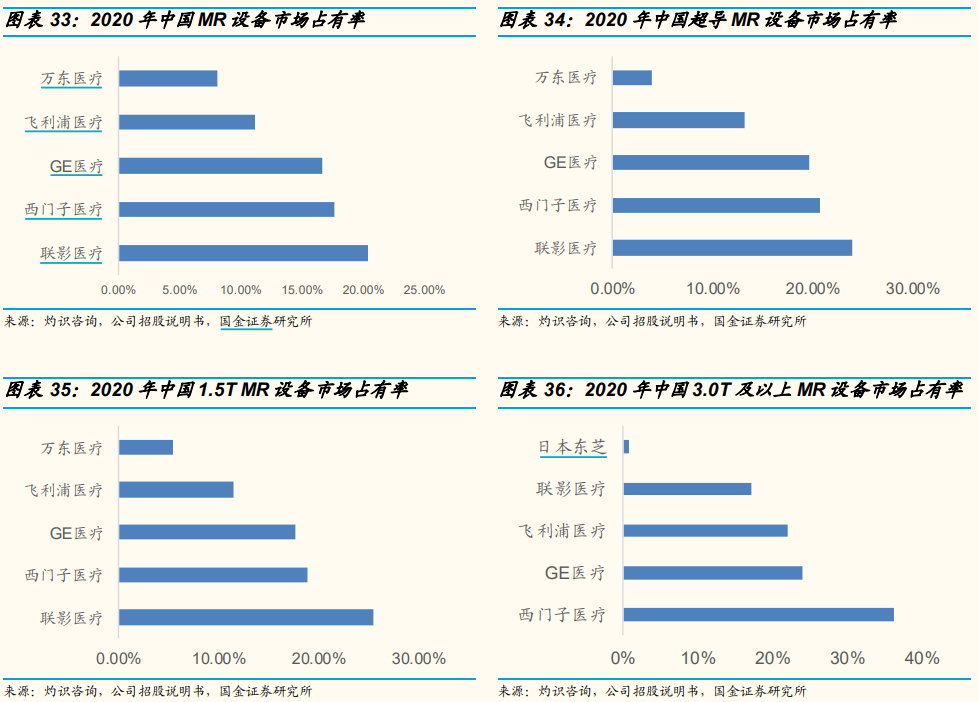 根據(jù)CIC灼識咨詢分析,以1.5T及以上MR設(shè)備為例,2010年新增設(shè)備國產(chǎn)化率不足1%,而2020年新增設(shè)備國產(chǎn)化率已經(jīng)突破40%。CIC灼識咨詢指出,以聯(lián)影醫(yī)療為代表的國產(chǎn)品牌憑借領(lǐng)先的技術(shù)、高超的性價(jià)比和優(yōu)質(zhì)的售后服務(wù)在市場上已經(jīng)打破進(jìn)口壟斷的現(xiàn)狀?!皣a(chǎn)高端醫(yī)學(xué)影像設(shè)備更獲得一批國內(nèi)頂級三甲醫(yī)院以及全球尖端醫(yī)療研究機(jī)構(gòu)的認(rèn)可?!?/p>