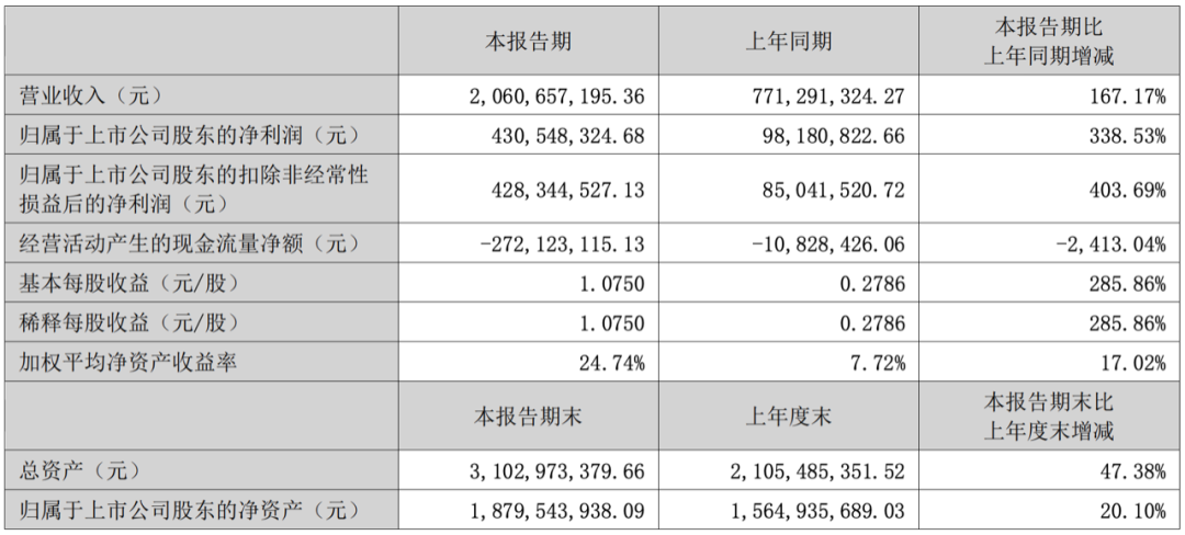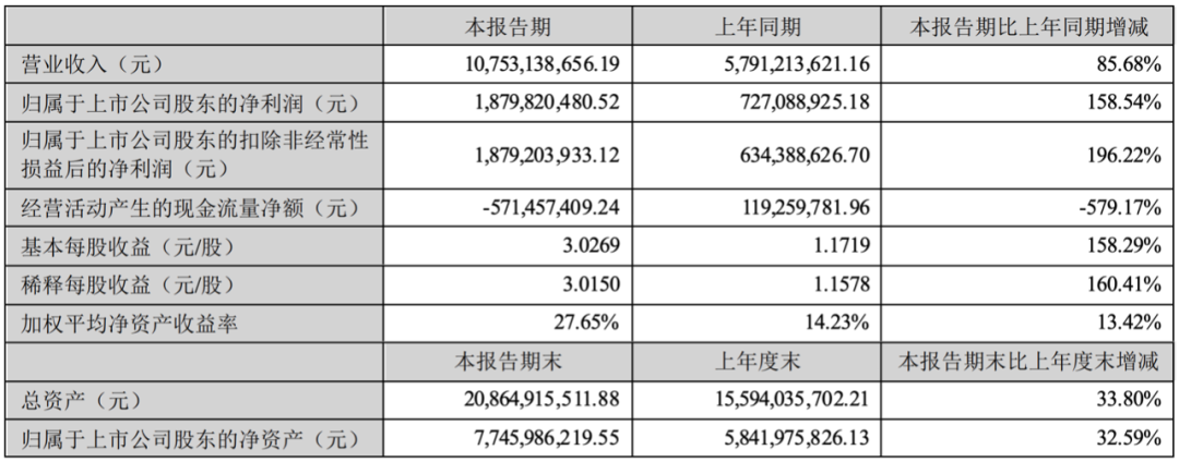 萬泰生物的凈利潤增速和凈利潤率都很高。上半年實(shí)現(xiàn)營業(yè)收入59.3億元,同比增長201.92%;凈利潤26.9億元,同比增長273.24%。賺錢賺地猛,主要是公司的二價(jià)HPV疫苗銷量增加,收入和利潤實(shí)現(xiàn)了高速增長。同時(shí),因國內(nèi)外新冠肺炎疫情的影響,公司的新冠原料和新冠檢測試劑的收入和利潤實(shí)現(xiàn)了快速增長。