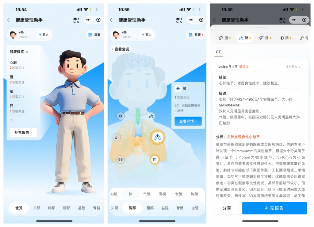 為解決用戶難以有效、及時發(fā)現(xiàn)潛在健康風險,無法進行長期健康管理的痛點,騰訊健康公布了以混元大模型為底座的全新AI智能體——“健康管理助手”。這個可視化的AI智能體充當了“健康哨兵”,以體檢報告、檢驗檢查報告智能解讀為基礎(chǔ),幫助用戶動態(tài)分析健康狀況,發(fā)現(xiàn)潛在風險,進而給出針對性的健康管理計劃。通過長期的智能跟蹤健康指標變化,AI健康管理助手還能成為用戶生活習慣的“行動教練”,以長期健康管理獲得長期健康收益。