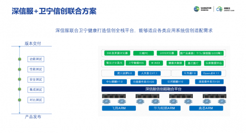 深信服聯(lián)合衛(wèi)寧健康通過聯(lián)合實(shí)驗(yàn)室的方式打造全棧平臺(tái),通過版本適配,能夠在最終產(chǎn)品發(fā)布上同步進(jìn)行,最大化地幫助醫(yī)院實(shí)現(xiàn)在信創(chuàng)領(lǐng)域里,通過軟件到最終平臺(tái),構(gòu)造全棧CPU架構(gòu),為醫(yī)院提供統(tǒng)一的信創(chuàng)的解決方案。