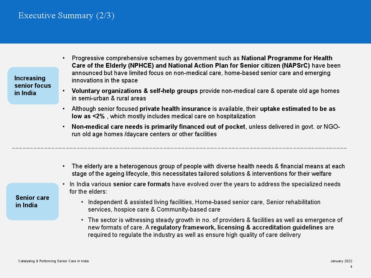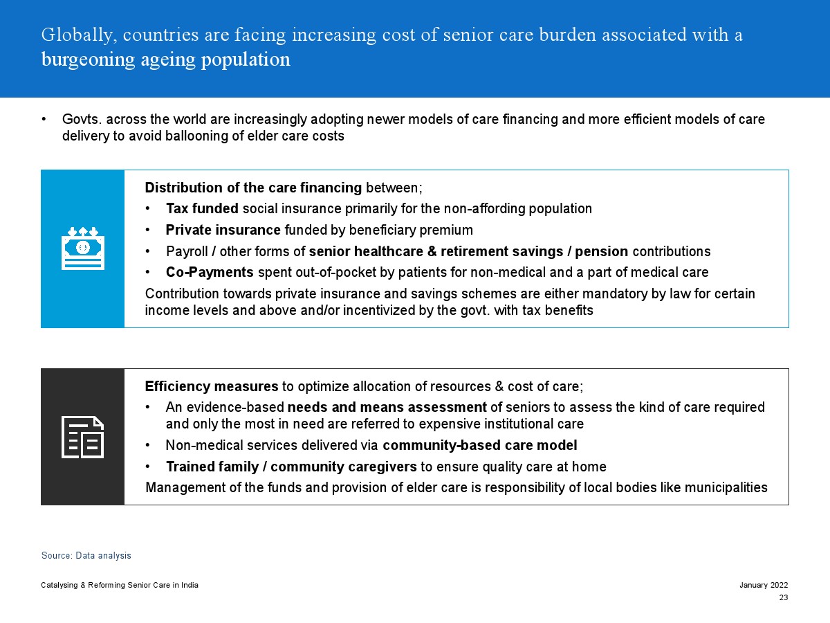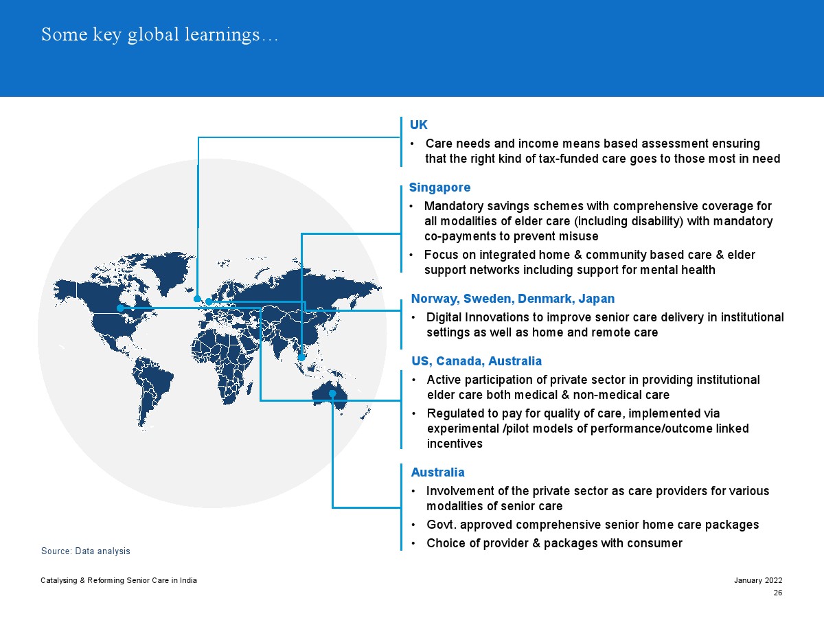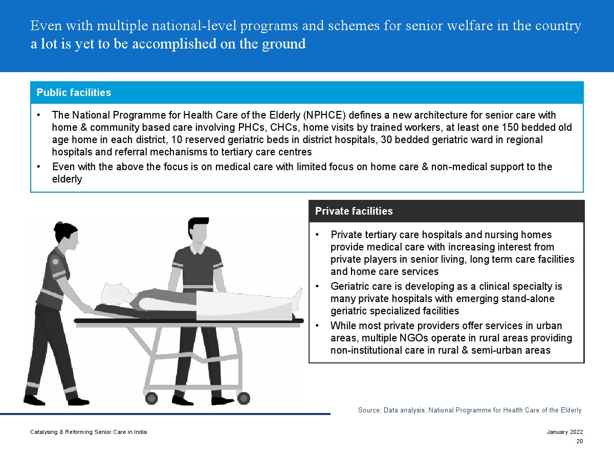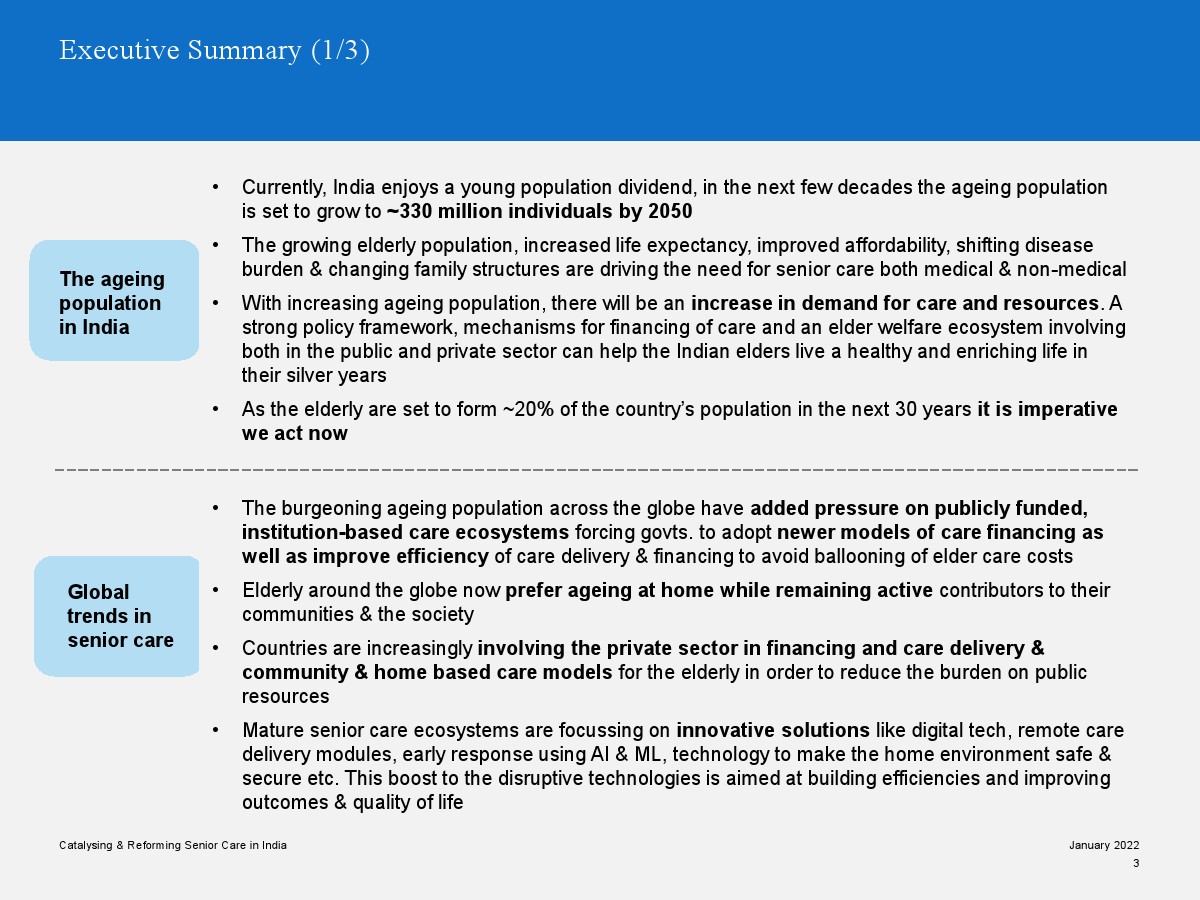 印度老年人協(xié)會發(fā)布了新報告“促進(jìn)和改革印度老年人護(hù)理”。目前,印度享有年輕人口紅利。但到2050年,老齡化人口將增長到約3.3億人。老年人口的增長、預(yù)期壽命的延長、負(fù)擔(dān)能力的提高、疾病負(fù)擔(dān)的轉(zhuǎn)移和家庭結(jié)構(gòu)的變化正在推動對醫(yī)療和非醫(yī)療老年護(hù)理的需求。隨著人口老齡化的加劇,對護(hù)理和資源的需求將會增加。由于老年人將在未來30年內(nèi)占該國人口的20%,因此印度必須立即采取行動。